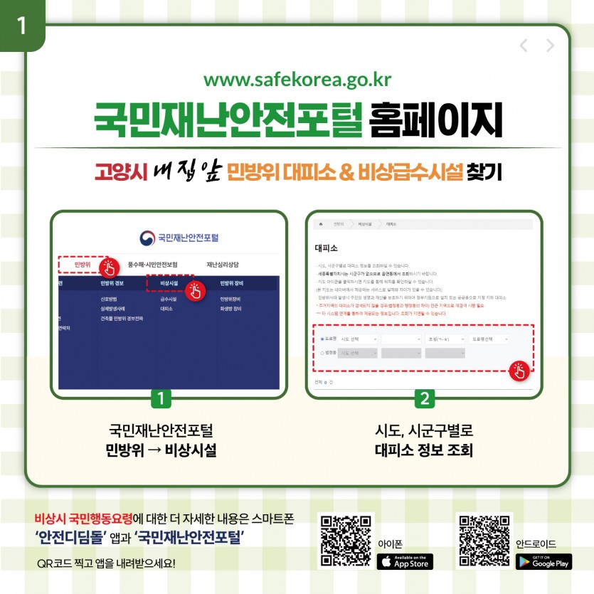 고양시 내 집 앞 민방위 대피소&비상급수시설 찾기 페이지 정보 조회수 : 1,555회 등록일 : 2024-01-26 본문 목록 이전글[고양국제꽃박람회] 2024년 고양국제꽃박람회 자원봉사자 모집 다음글2023년 경기문화예술교육주간