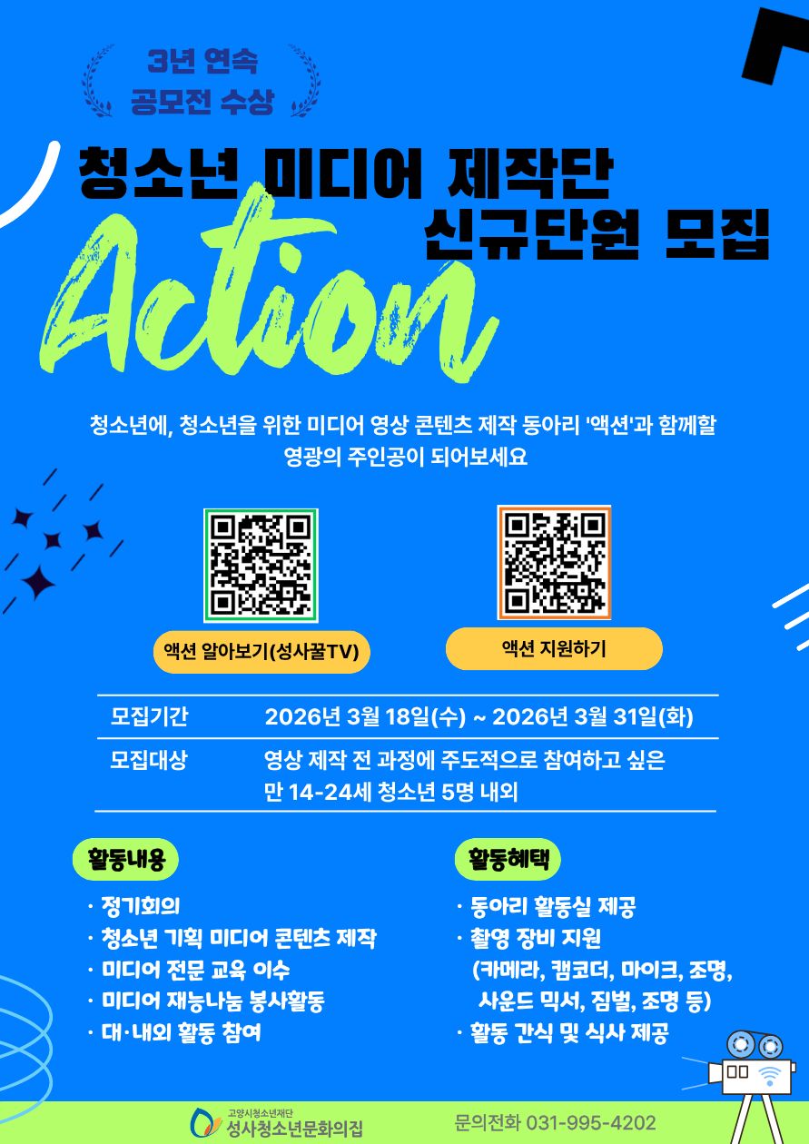프로그램 신청 프로그램 현황 검색창 열기 시설선택 사무국 토당청소년수련관 마두청소년수련관 일산서구청소년수련관 성사청소년문화의집 탄현청소년문화의집 고양시청소년상담복지센터 화정청소년자유공간 주교청소년자유공간 행신청소년자유공간 고양시학교밖청소년지원센터 송포청소년문화의집 검색 성사청소년문화의집 2026년 성사청소년문화의집 청소년미디어제작단 '액션' 9기 모집 접수기간2026-03-18 ~ 2026-03-31 운영기간 2026-03-01 ~ 2026-12-31 모집중 성사청소년문화의집 2025년 성사청소년문화의집 청소년 자율동아리 모집 접수기간2025-01-01 ~ 2025-12-31 운영기간 2025-01-01 ~ 2025-12-31 마감 성사청소년문화의집 2025년 청소년 창작공방(2) 나만의 미니어처 도시락 만들기 접수기간2025-10-11 ~ 2025-10-20 운영기간 2025-10-25 ~ 2025-10-25 마감 성사청소년문화의집 2025년 청소년 기후환경 네트워크 참가자 모집 접수기간2025-08-16 ~ 2025-09-06 운영기간 2025-09-13 ~ 2025-09-13 마감 성사청소년문화의집 2025년 성사청소년문화의집 청소년 기후위기 대응 역량 강화 프로그램 참가자 모집 접수기간2025-07-09 ~ 2025-07-26 운영기간 2025-08-04 ~ 2025-11-22 마감 성사청소년문화의집 2025년 청소년 건강권 프로그램 '오늘은 내가 성사 댄스킹' 접수기간2025-07-08 ~ 2025-07-18 운영기간 2025-07-26 ~ 2024-08-03 마감 성사청소년문화의집 2025년 성사청소년문화의집 고양시-정선군 지역간교류캠프 접수기간2025-05-29 ~ 2025-06-01 운영기간 2025-06-06 ~ 2025-06-07 마감 성사청소년문화의집 2025년 성사청소년문화의집 장애인식 개선 배리어프리 활동 참가자 모집 접수기간2025-05-09 ~ 2025-05-21 운영기간 2025-05-31 ~ 2025-05-31 마감 성사청소년문화의집 2025년 성사청소년문화의집 청소년자원봉사단 씨밀레 모집 접수기간2025-01-01 ~ 2025-05-10 운영기간 2025-01-01 ~ 2025-12-31 마감 성사청소년문화의집 2025년 성사청소년문화의집 4월 패밀리 데이 운영 접수기간2025-04-26 ~ 2025-04-26 운영기간 2025-04-26 ~ 2025-04-26 마감 성사청소년문화의집 2025년 성사청소년문화의집 고양시 청소년동아리 지원사업 운영 접수기간2025-03-01 ~ 2025-04-08 운영기간 2025-03-01 ~ 2025-12-31 마감 성사청소년문화의집 2025년 성사청소년문화의집 공유학교 이모티콘 제작 과정 운영 접수기간2025-03-01 ~ 2025-03-29 운영기간 2025-04-12 ~ 2025-05-31 마감 성사청소년문화의집 2025년 성사청소년문화의집 공유학교 웹드라마 제작 과정 운영 접수기간2025-03-01 ~ 2025-03-29 운영기간 2025-04-05 ~ 2025-05-31 마감 성사청소년문화의집 2025년 성사청소년문화의집 청소년운영위원회 운영 접수기간2025-02-01 ~ 2025-03-29 운영기간 2025-01-01 ~ 2025-12-31 마감 성사청소년문화의집 2025년 성사청소년문화의집 동아리 연합발대식 운영 접수기간2025-03-22 ~ 2025-03-22 운영기간 2025-03-22 ~ 2025-03-22 마감 성사청소년문화의집 2025년 성사청소년문화의집 3월 패밀리 데이 접수기간2025-03-08 ~ 2025-03-08 운영기간 2025-03-08 ~ 2025-03-08 마감 처음 이전 열린1페이지 2페이지 3페이지 다음 맨끝