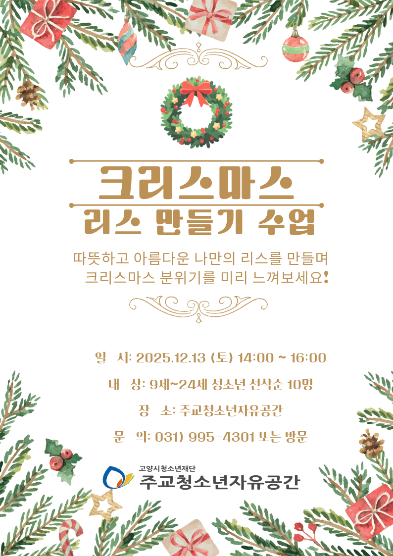 프로그램 신청 프로그램 현황 검색창 열기 시설선택 경영본부 토당청소년수련관 마두청소년수련관 일산서구청소년수련관 성사청소년문화의집 탄현청소년문화의집 고양시청소년상담복지센터 화정청소년자유공간 주교청소년자유공간 행신청소년자유공간 고양시학교밖청소년지원센터 송포청소년문화의집 검색 탄현청소년문화의집 [탄현] 탄현청소년문화의집 고객만족도 조사 접수기간2025-10-14 ~ 2025-12-13 운영기간 2025-10-14 ~ 2025-12-13 모집중 고양시청소년상담복지센터 미술치료 청소년 대상자 모집 접수기간2025-01-01 ~ 2025-12-31 운영기간 2025-01-01 ~ 2025-12-31 모집중 고양시청소년상담복지센터 놀이치료 청소년 대상자 모집 접수기간2025-01-01 ~ 2025-12-31 운영기간 2025-01-01 ~ 2025-12-31 모집중 성사청소년문화의집 2025년 성사청소년문화의집 청소년 자율동아리 모집 접수기간2025-01-01 ~ 2025-12-31 운영기간 2025-01-01 ~ 2025-12-31 모집중 고양시학교밖청소년지원센터 고양시학교밖청소년지원센터 10~12월 프로그램 안내 접수기간2025-10-01 ~ 2025-12-31 운영기간 2025-10-01 ~ 2025-12-31 모집중 주교청소년자유공간 주교청소년자유공간 12월 청소년여가프로그램: 영화로 꿈꾸는 데이 접수기간2025-12-01 ~ 2025-12-31 운영기간 2025-12-01 ~ 2025-12-31 모집중 주교청소년자유공간 주교청소년자유공간 12월 청소년여가프로그램: 크리스마스 케이크 만들기 접수기간2025-12-01 ~ 2025-12-31 운영기간 2025-12-01 ~ 2025-12-31 모집중 주교청소년자유공간 주교청소년자유공간 12월 청소년창작프로그램 "크리스마스 리스 만들기" 접수기간2025-12-01 ~ 2025-12-31 운영기간 2025-12-01 ~ 2025-12-31 모집중 고양시청소년상담복지센터 집단심리검사프로그램 - MBTI 바로알기 접수기간2025-05-15 ~ 2025-11-30 운영기간 2025-05-16 ~ 2025-12-31 마감 마두청소년수련관 2025년 마두청소년수련관 자율동아리 ONEDOOR 기획활동 '응원의 한마디 공모전' 접수기간2025-10-24 ~ 2025-11-01 운영기간 2025-10-24 ~ 2025-12-13 마감 고양시청소년상담복지센터 2025년 부모(양육)코칭 대상자 모집 접수기간2025-04-28 ~ 2025-05-31 운영기간 2025-03-01 ~ 2025-12-31 마감 탄현청소년문화의집 [탄현] 청소년운영위원회 별솔 11기 모집 접수기간2025-05-16 ~ 2025-05-31 운영기간 2025-05-31 ~ 2026-01-17 마감 탄현청소년문화의집 2025년 청소년 자율동아리 추가모집 접수기간2025-05-01 ~ 2025-05-20 운영기간 2025-01-01 ~ 2025-12-31 마감 일산서구청소년수련관 2025년 일산서구청소년수련관 <콘텐츠기획단> 모집 접수기간2025-04-22 ~ 2025-05-10 운영기간 2025-05-01 ~ 2025-12-31 마감 성사청소년문화의집 2025년 성사청소년문화의집 청소년자원봉사단 씨밀레 모집 접수기간2025-01-01 ~ 2025-05-10 운영기간 2025-01-01 ~ 2025-12-31 마감 토당청소년수련관 2025년 청소년 자율동아리 모집 안내 접수기간0202-01-02 ~ 2025-05-09 운영기간 2025-01-02 ~ 2025-12-31 마감 처음 이전 열린1페이지 2페이지 3페이지 다음 맨끝