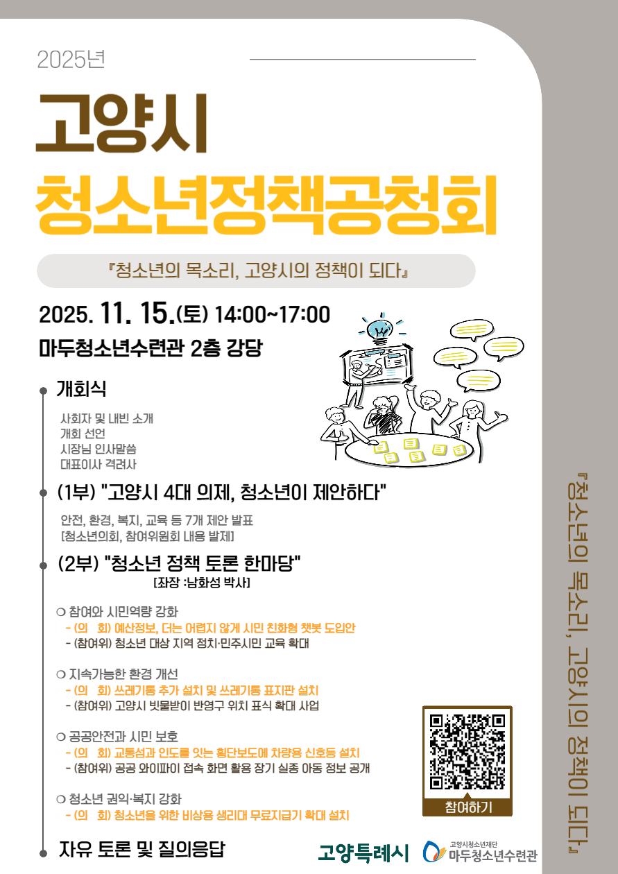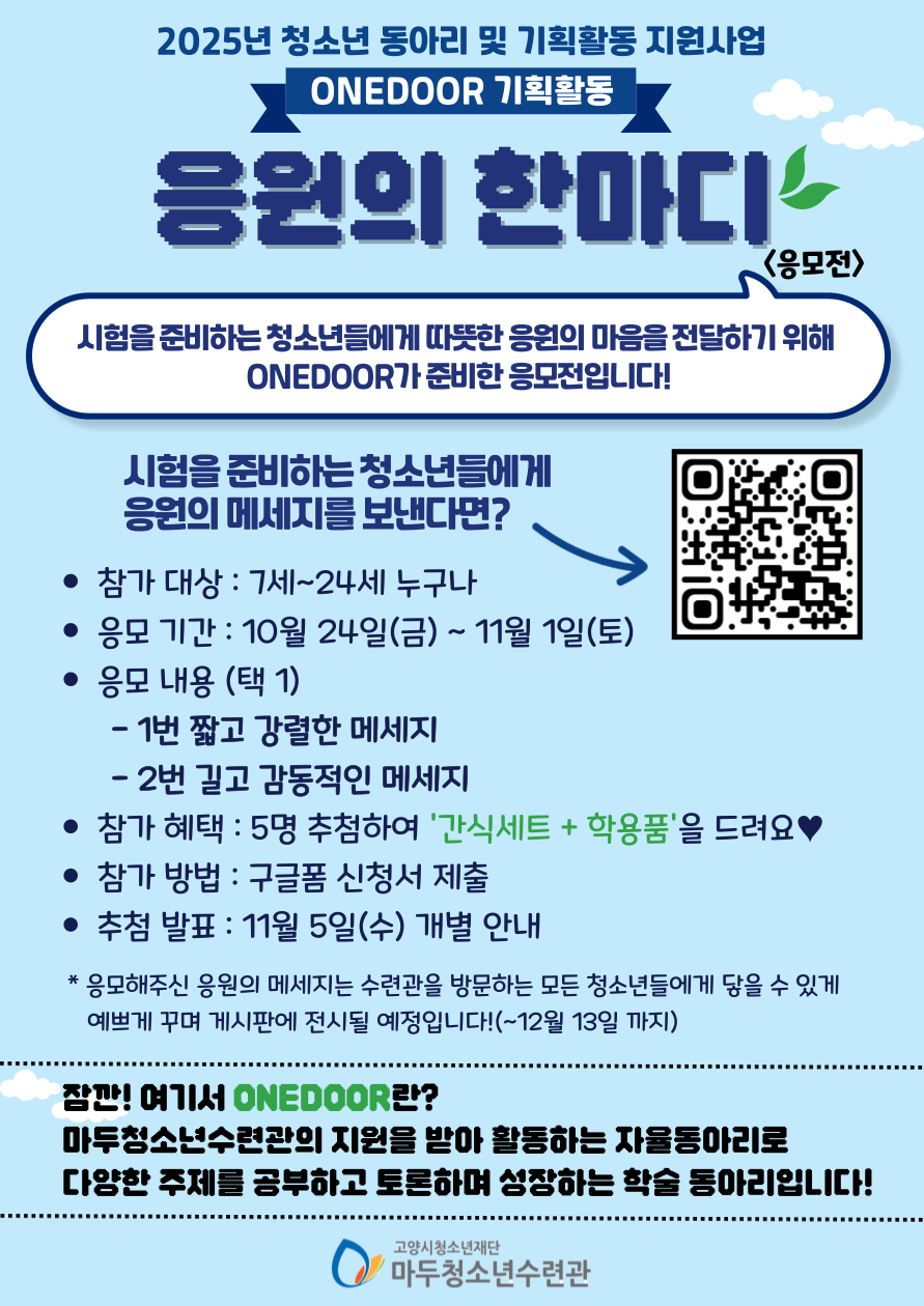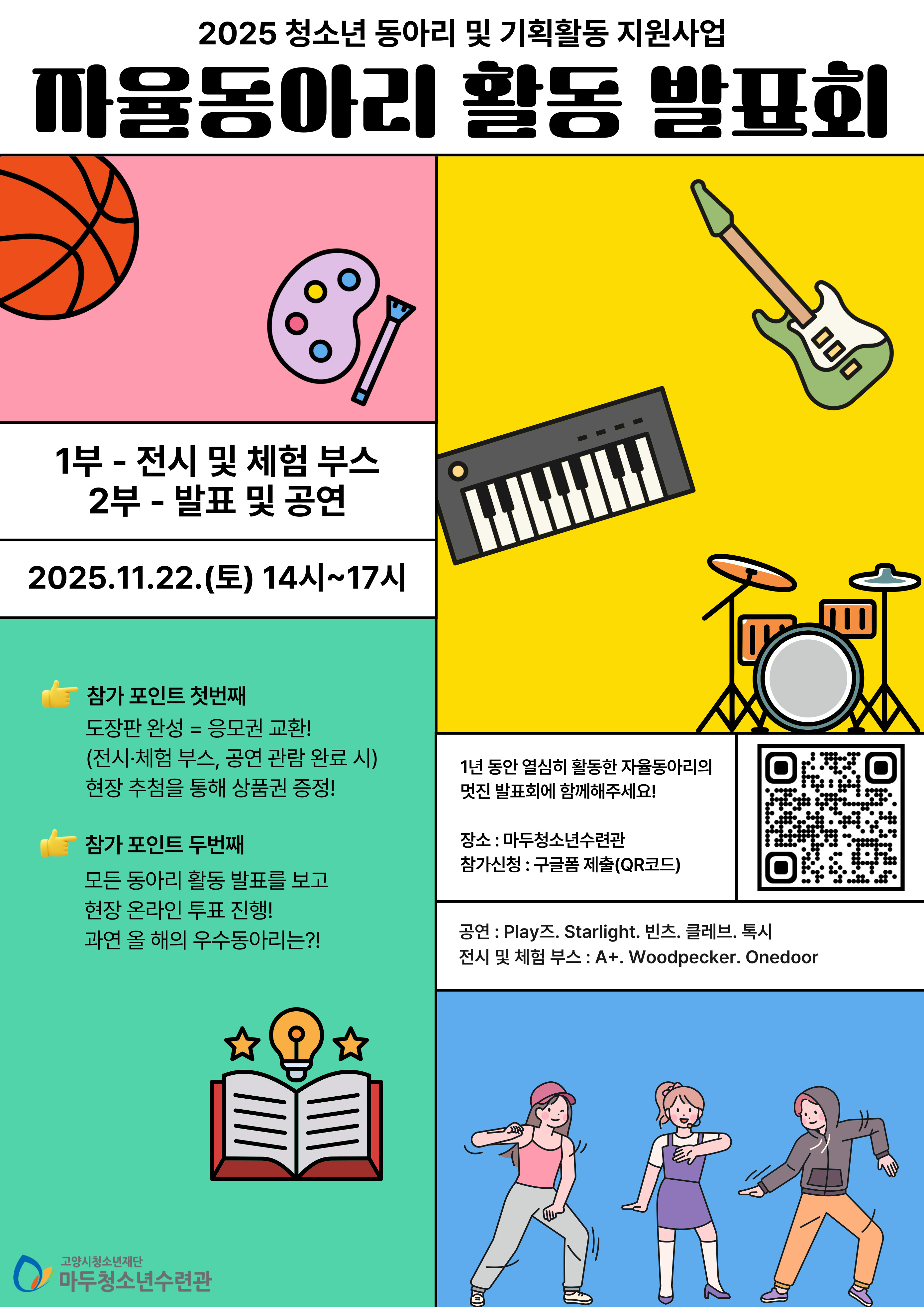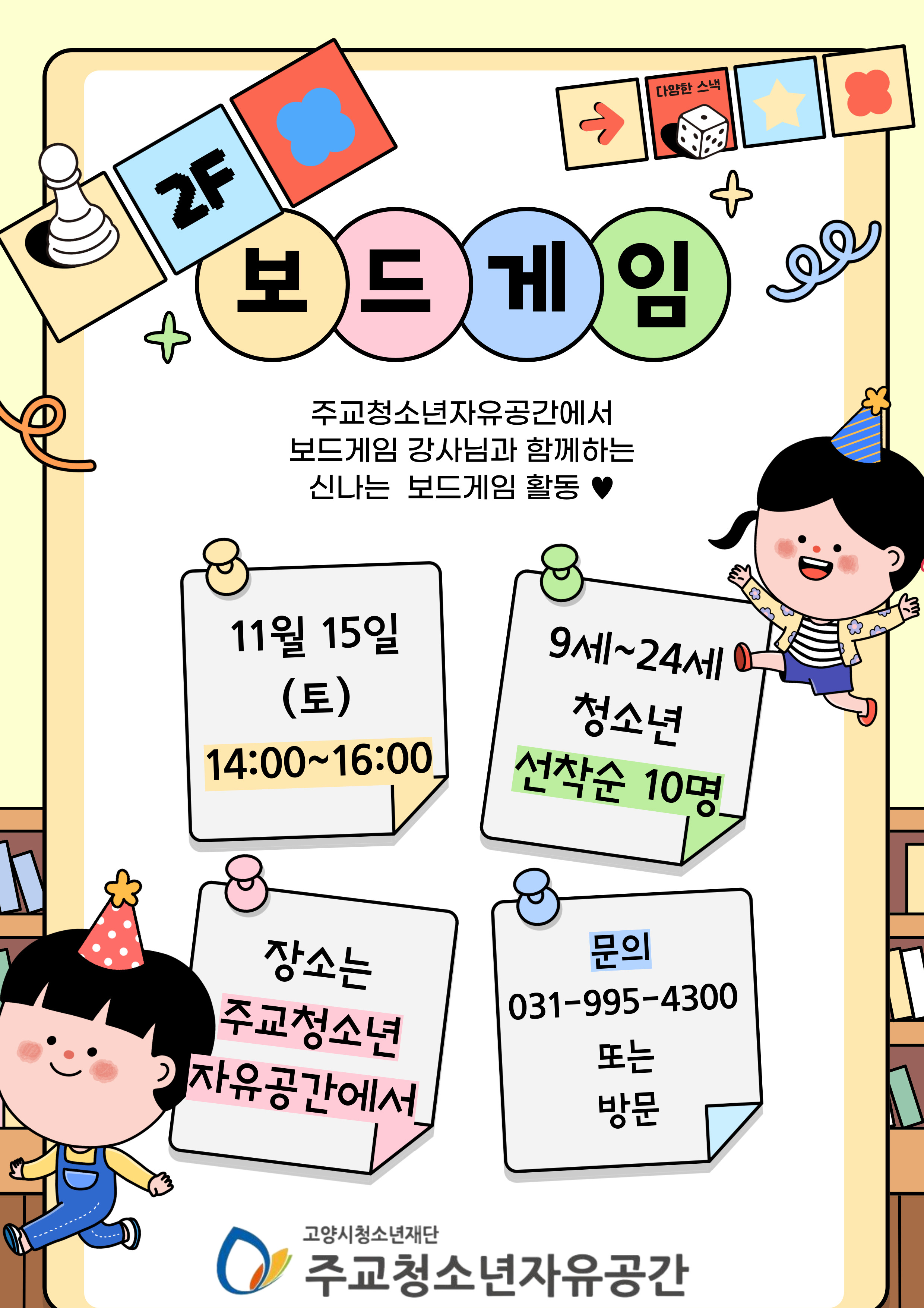 프로그램 신청 프로그램 현황 검색창 열기 시설선택 경영본부 토당청소년수련관 마두청소년수련관 일산서구청소년수련관 성사청소년문화의집 탄현청소년문화의집 고양시청소년상담복지센터 화정청소년자유공간 주교청소년자유공간 행신청소년자유공간 고양시학교밖청소년지원센터 송포청소년문화의집 검색 행신청소년자유공간 2025년 행신청소년자유공간 11월 청소년 여가 프로그램 '수제 빼빼로 만들기' 참여 청소년 모집 안내 접수기간2025-11-01 ~ 2025-11-08 운영기간 2025-11-08 ~ 2025-11-08 모집중 고양시청소년상담복지센터 2025 고양특례시 연합아웃리치 훌훌 접수기간2025-10-28 ~ 2025-11-13 운영기간 2025-11-13 ~ 2025-11-13 모집중 마두청소년수련관 제1회 고양시 청소년정책공청회 개최 접수기간2025-10-31 ~ 2025-11-14 운영기간 2025-11-15 ~ 2025-11-15 모집중 주교청소년자유공간 주교청소년자유공간 11월 청소년여가프로그램-1: 보드게임 접수기간2025-11-01 ~ 2025-11-15 운영기간 2025-11-15 ~ 2025-11-15 모집중 마두청소년수련관 2025년 자율동아리 연간 활동 발표회 접수기간2025-11-01 ~ 2025-11-17 운영기간 2025-11-22 ~ 2025-11-22 모집중 주교청소년자유공간 주교청소년자유공간 11월 청소년여가프로그램-2: 모루키링 만들기 접수기간2025-11-01 ~ 2025-11-22 운영기간 2025-11-22 ~ 2025-11-22 모집중 고양시청소년상담복지센터 집단심리검사프로그램 - MBTI 바로알기 접수기간2025-05-15 ~ 2025-11-30 운영기간 2025-05-16 ~ 2025-12-31 모집중 탄현청소년문화의집 [탄현] 탄현청소년문화의집 고객만족도 조사 접수기간2025-10-14 ~ 2025-12-13 운영기간 2025-10-14 ~ 2025-12-13 모집중 고양시청소년상담복지센터 미술치료 청소년 대상자 모집 접수기간2025-01-01 ~ 2025-12-31 운영기간 2025-01-01 ~ 2025-12-31 모집중 고양시청소년상담복지센터 놀이치료 청소년 대상자 모집 접수기간2025-01-01 ~ 2025-12-31 운영기간 2025-01-01 ~ 2025-12-31 모집중 성사청소년문화의집 2025년 성사청소년문화의집 청소년 자율동아리 모집 접수기간2025-01-01 ~ 2025-12-31 운영기간 2025-01-01 ~ 2025-12-31 모집중 고양시학교밖청소년지원센터 고양시학교밖청소년지원센터 10~12월 프로그램 안내 접수기간2025-10-01 ~ 2025-12-31 운영기간 2025-10-01 ~ 2025-12-31 모집중 마두청소년수련관 2025년 마두청소년수련관 자율동아리 ONEDOOR 기획활동 '응원의 한마디 공모전' 접수기간2025-10-24 ~ 2025-11-01 운영기간 2025-10-24 ~ 2025-12-13 마감 주교청소년자유공간 주교청소년자유공간 10월 여가프로그램 "영화로 꿈꾸는 데이" 접수기간2025-10-01 ~ 2025-10-31 운영기간 2025-10-01 ~ 2025-10-31 마감 주교청소년자유공간 주교청소년자유공간 10월 여가프로그램 "주교 가을 운동회" 접수기간2025-10-01 ~ 2025-10-24 운영기간 2025-10-01 ~ 2025-10-31 마감 성사청소년문화의집 2025년 청소년 창작공방(2) 나만의 미니어처 도시락 만들기 접수기간2025-10-11 ~ 2025-10-20 운영기간 2025-10-25 ~ 2025-10-25 마감 처음 이전 열린1페이지 2페이지 3페이지 4페이지 5페이지 6페이지 7페이지 8페이지 9페이지 10페이지 다음 맨끝