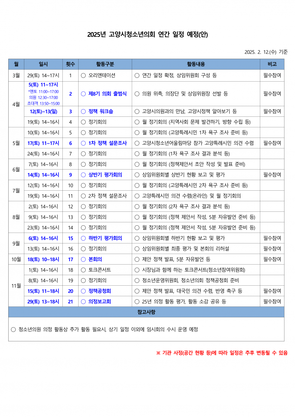 마두청소년수련관 2025년 고양시청소년의회 모집 합격자 공고(1차)