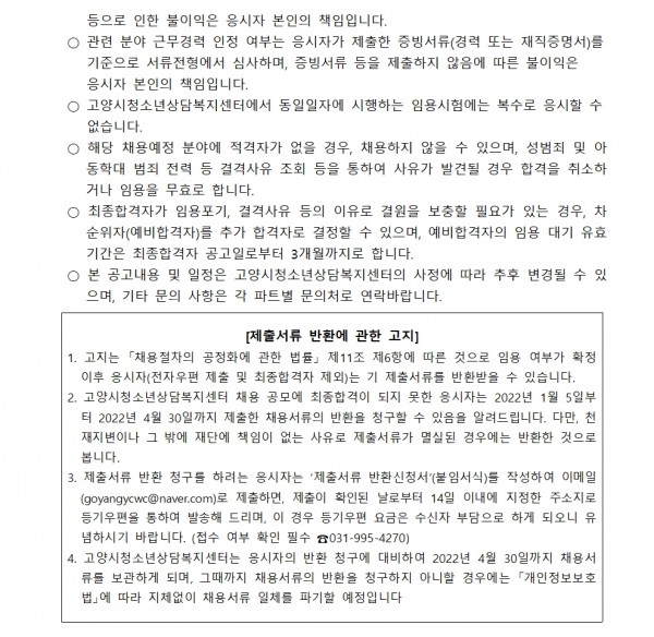 2022년 고양시청소년상담복지센터 기간제근로자 채용 추가연장공지 > 채용정보