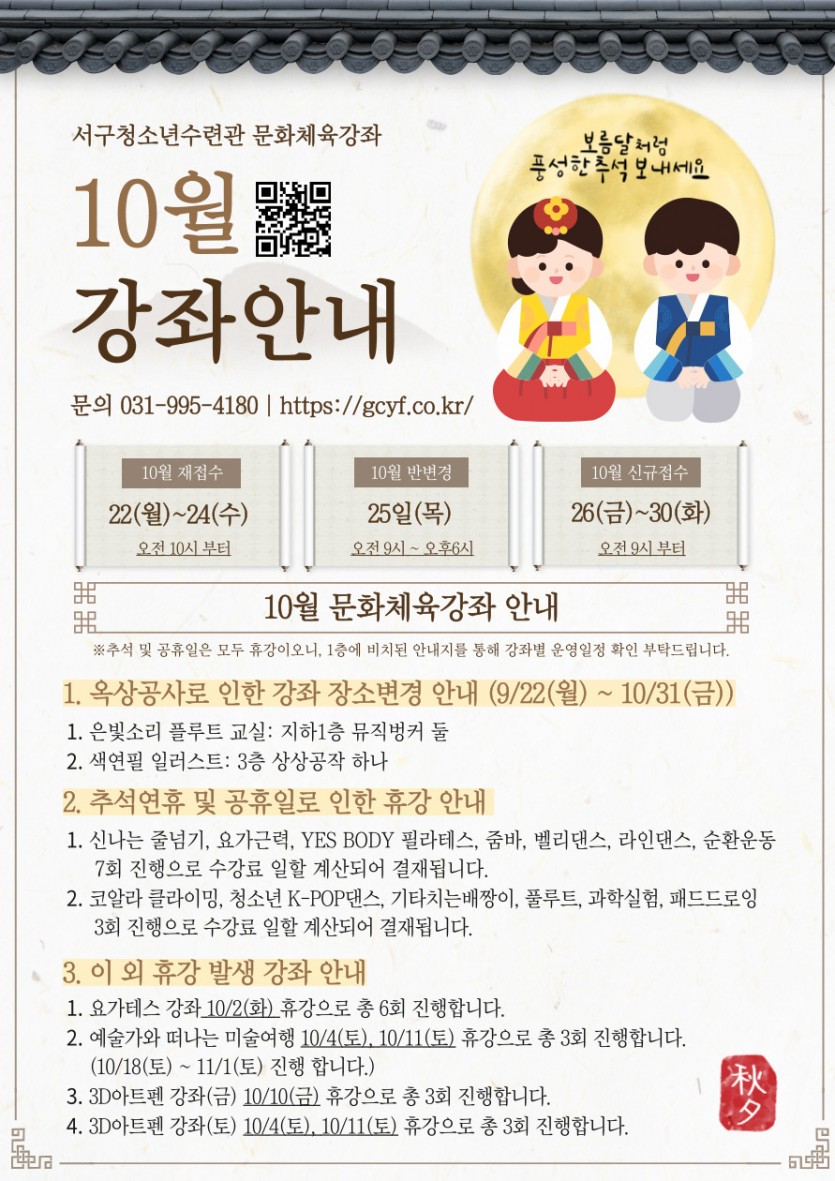 2025년 10월 문화체육강좌 안내