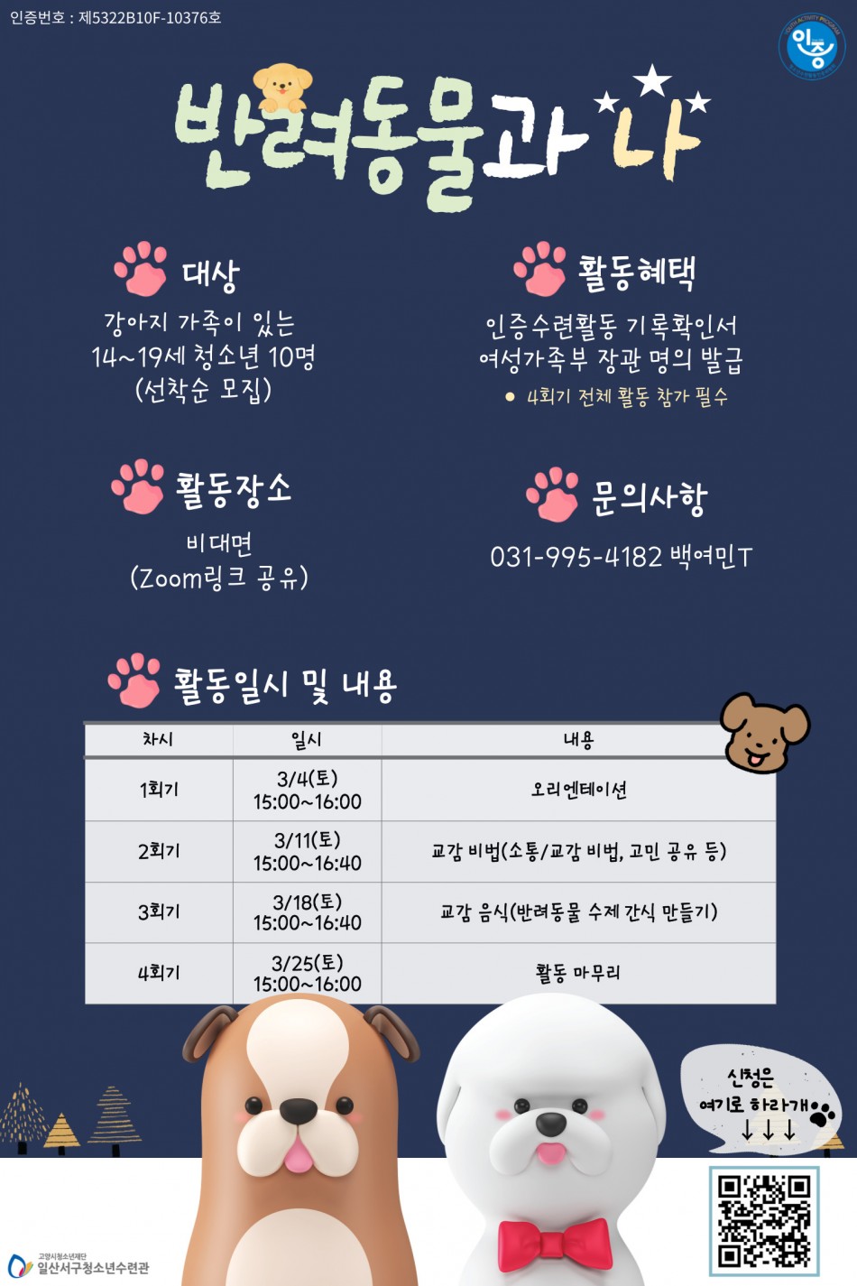 일산서구청소년수련관 ★ 2023년 반려동물과 나 참가자 모집 ★
