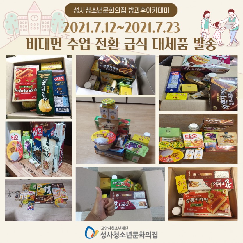 2021년 성사청소년문화의집 방과후아카데미 노을학교 비대면 수업 전환에 따른 급식 대체품 발송