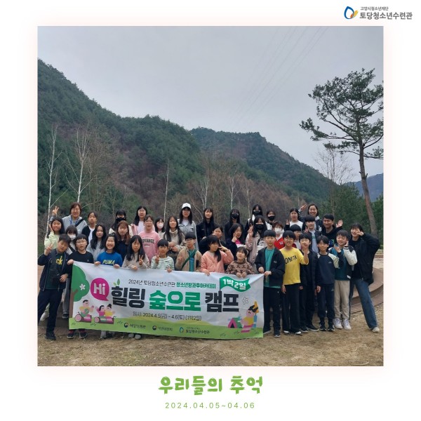 2024년 1박 2일 캠프_하이힐링원 <숲으로!!> 페이지 정보 조회수 : 1,207회 등록일 : 2024-04-08 본문 목록 이전글2024년 지구의 날 ( •̀ ω •́ )✧ 다음글2024년 청알청알 동아리연합활동 <코코넛 프렌치토스트> 만들기