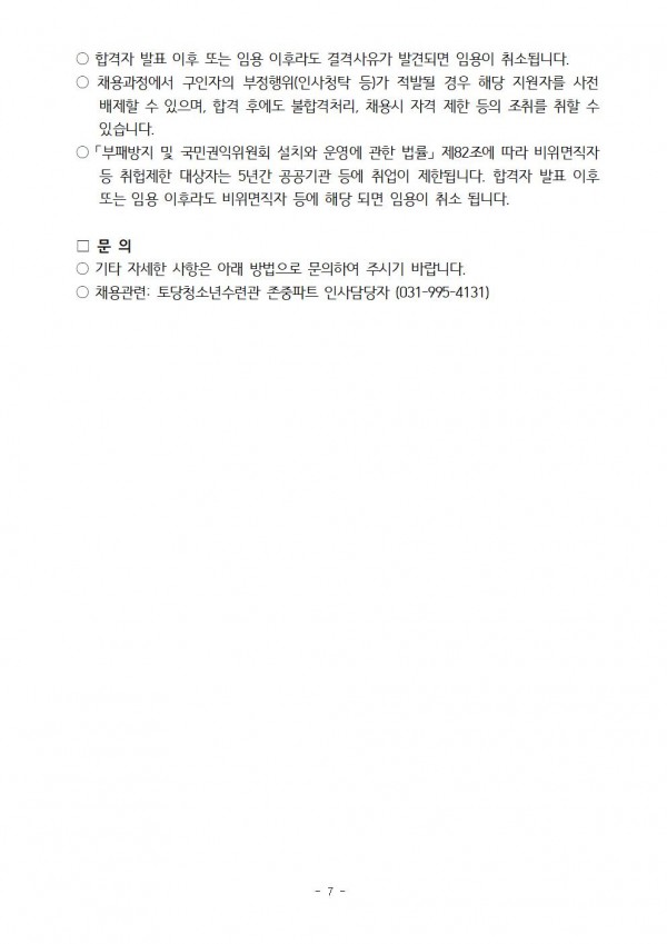 토당청소년수련관 [2023-2]토당청소년수련관 2023년 제1차 기간제근로자 채용 재공고